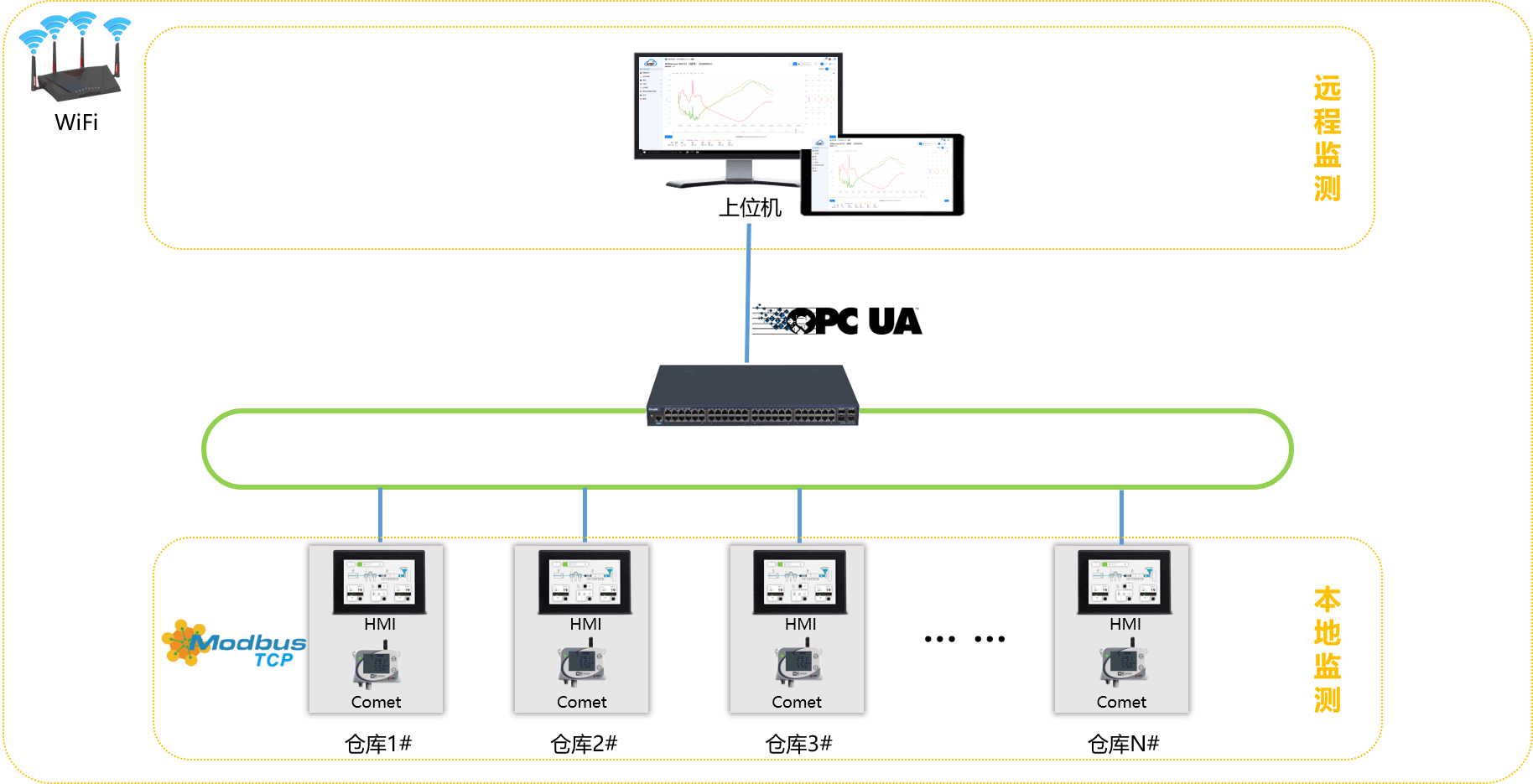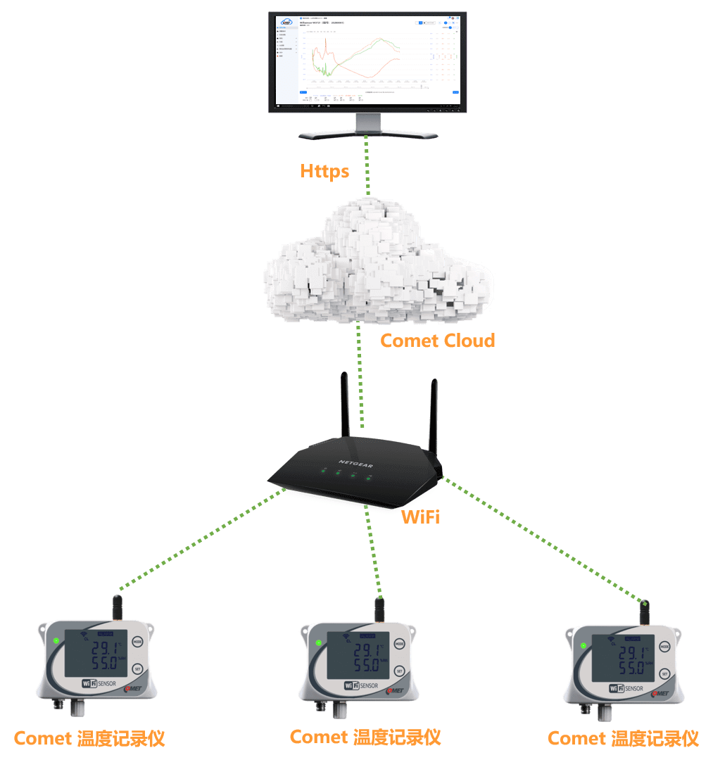 通过WiFi传感器和COMET Cloud结合,实现温度监控以及远程管理。