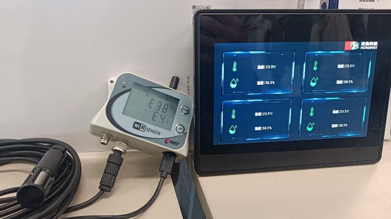 通过WiFi传感器和宏集高性能物联网HMI结合,可实现温度监控以及集中管理。
