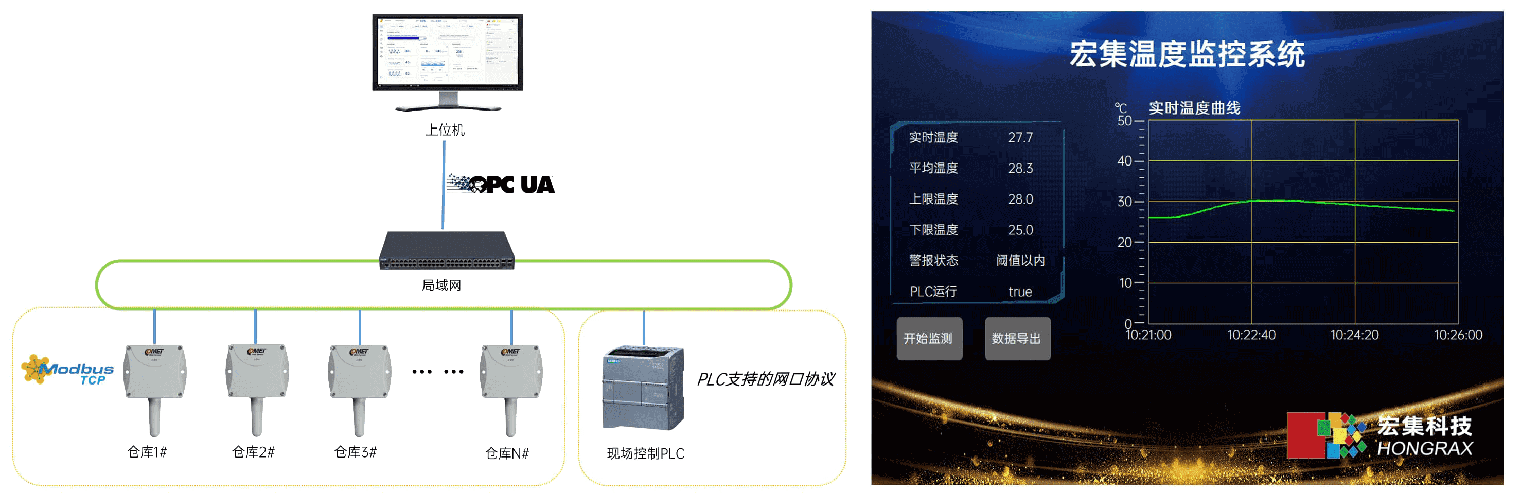 针对客户的三个需求,推荐使用宏集Comet温度记录仪W3745对每个仓库进行温湿度监测,同时采用宏集高性能物联网HMI实现每个仓库的温度显示,在上位机搭配Comet database软件实现温度数据的管理。