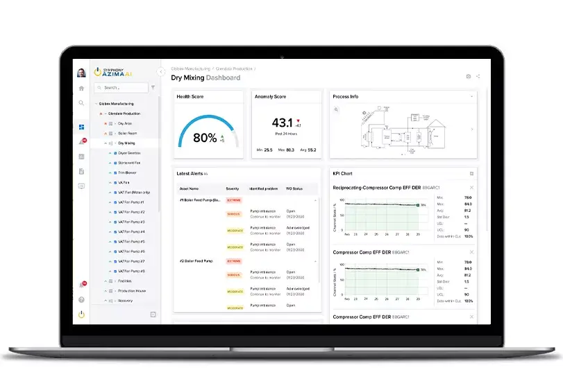 使用数字孪生模型、深度机器学习和推理等对接入平台的数据做分层分析,获得设备健康评分以及优化改进建议,帮助企业统一管理工厂设备并监测其状态,进一步优化过程产量和吞吐量。